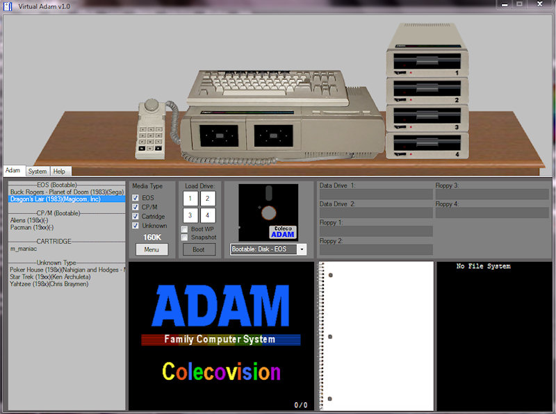 This is the final version of the Virtual ADAM front end for the ADAMem emulator. It utilizes DOSBox and clears up most of the problems associated with running ADAMem in Windows XP or Vista. This version has built in documentation, clears up some bugs in the previous version, and has its own installation program.