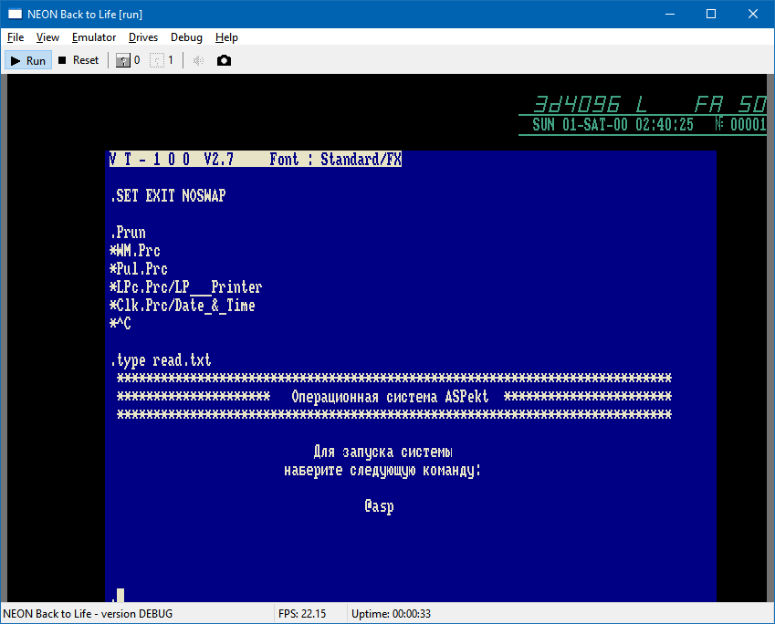 Neon Back to Life! is emulator of Sojuz-Neon PK 11/16, soviet computer based on PDP-11 compatible processor.